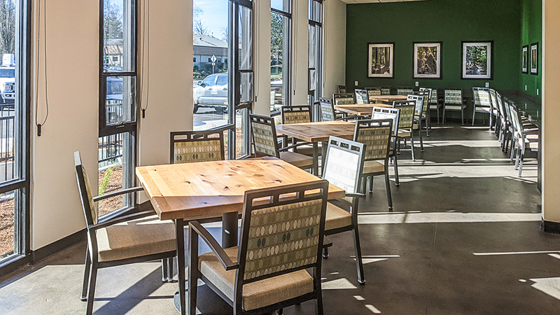 Open to the public, the Community at Marquis Eugene is a comfortable, relaxing gathering space for grabbing coffee for a business meeting, a light lunch with family, or happy hour with a friend. Relax on the couch by the fireplace or enjoy the garden terrace and outdoor fire pit.