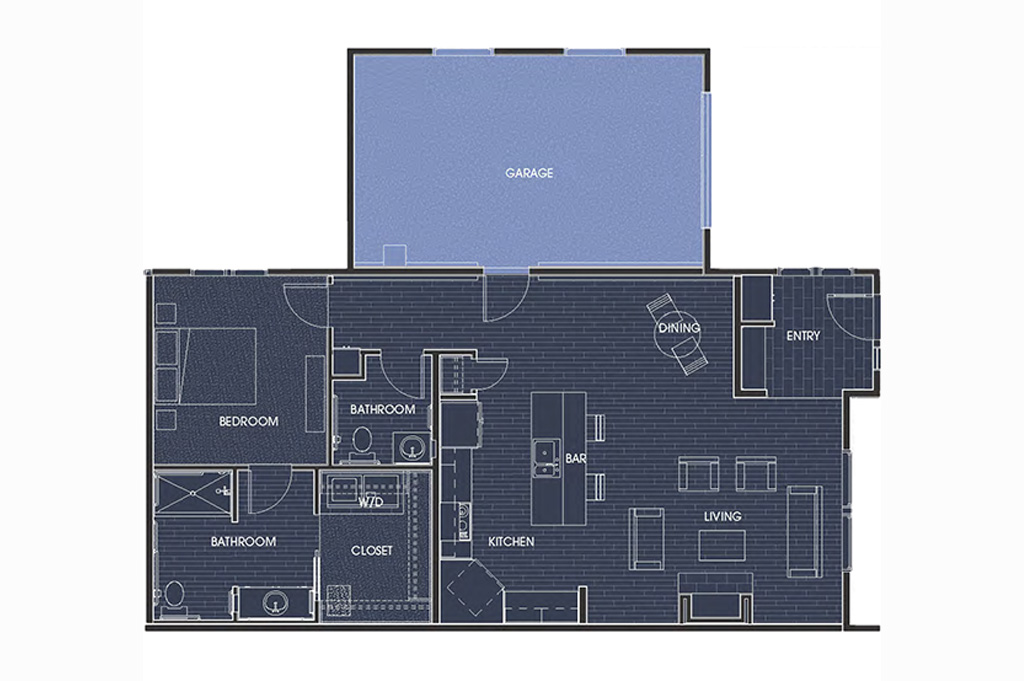 Unit D - 1 bedroom, garage (319 SF), deck (66 SF)
