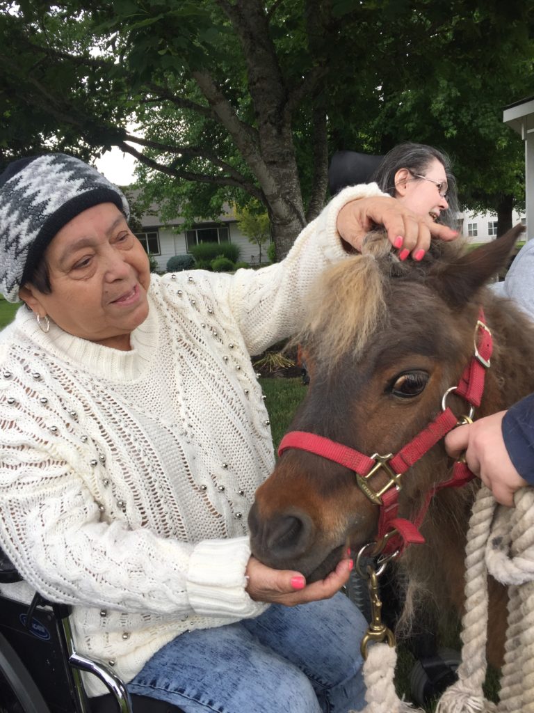 Betty wakes up when she wants every day, which is usually around nine in the morning. After some assistance washing up and getting dressed, she’s accompanied to breakfast by one of her regular caregivers, Sarah. Breakfast is Betty’s favorite meal of the day and she loves pancakes the most. The dining staff make her favorite – chocolate chip pancakes, every Friday. After breakfast, Betty has a check-in with the nurse, receives her morning medications and relaxes in her room, listening to her favorite music.