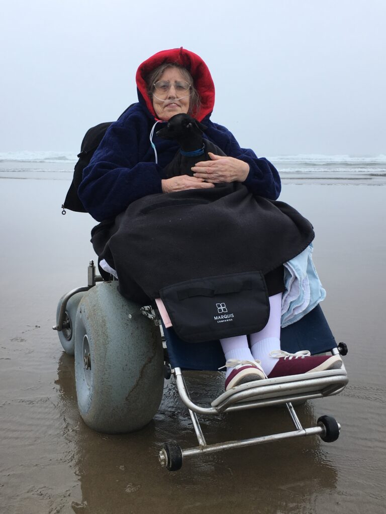 Betty’s daughter and family are coming to have dinner with her in the dining room, so her evening caregiver Martina helps her get ready. Betty’s grandkids love coming to see Grandma Betty, and they also love the dessert in the dining room. After a welcoming, comfortable visit, Betty has an evening check-in with the nurse and receives her medications. Martina helps her with toileting and getting ready for bed. Once settled, Betty goes back to her book on tape for a bit more listening before she decides she’s ready for sleep.