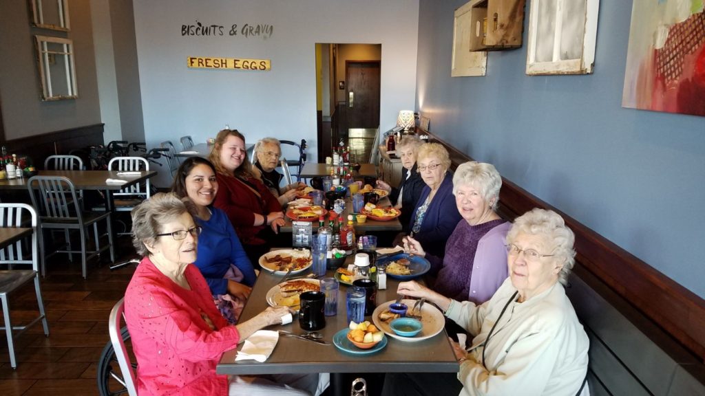 Betty wakes up when she wants every day, which is usually around nine in the morning. After some assistance washing up and getting dressed, she’s accompanied to breakfast by one of her regular caregivers, Sarah. Breakfast is Betty’s favorite meal of the day and she loves pancakes the most. The dining staff make her favorite – chocolate chip pancakes, every Friday. After breakfast, Betty has a check-in with the nurse, receives her morning medications and relaxes in her room, listening to her favorite music.