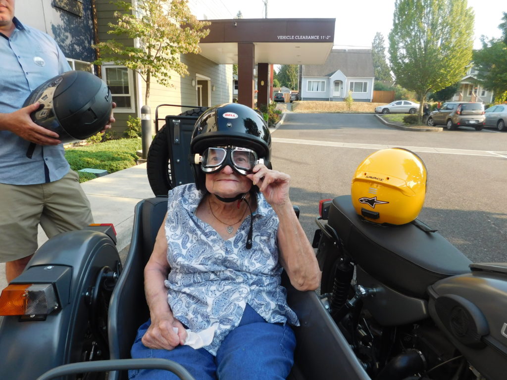 Betty’s daughter and family are coming to have dinner with her in the dining room, so her evening caregiver Martina helps her get ready. Betty’s grandkids love coming to see Grandma Betty, and they also love the dessert in the dining room. After a welcoming, comfortable visit, Betty has an evening check-in with the nurse and receives her medications. Martina helps her with toileting and getting ready for bed. Once settled, Betty goes back to her book on tape for a bit more listening before she decides she’s ready for sleep.