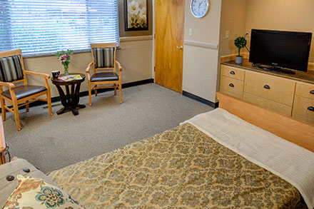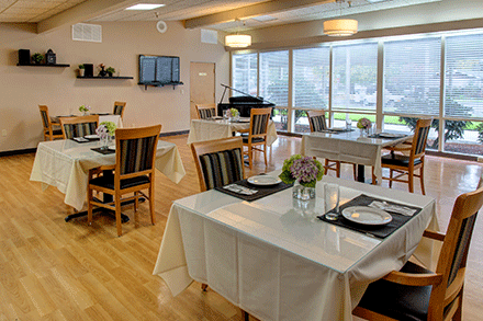 Betty wakes up when she wants every day, which is usually around nine in the morning. After some assistance washing up and getting dressed, she’s accompanied to breakfast by one of her regular caregivers, Sarah. Breakfast is Betty’s favorite meal of the day and she loves pancakes the most. The dining staff make her favorite – chocolate chip pancakes, every Friday. After breakfast, Betty has a check-in with the nurse, receives her morning medications and relaxes in her room, listening to her favorite music.