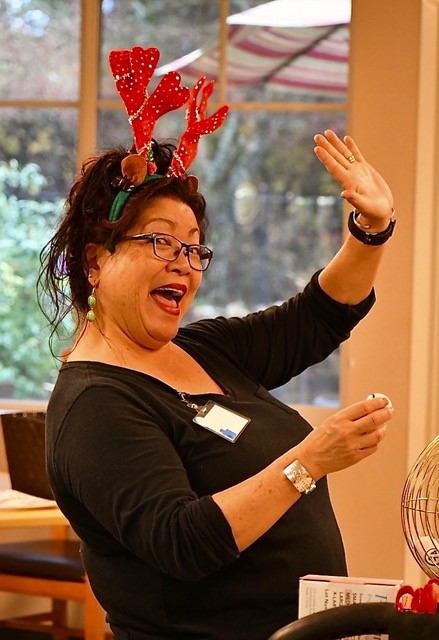 Betty’s daughter and family are coming to have dinner with her in the dining room, so her evening caregiver Martina helps her get ready. Betty’s grandkids love coming to see Grandma Betty, and they also love the dessert in the dining room. After a welcoming, comfortable visit, Betty has an evening check-in with the nurse and receives her medications. Martina helps her with toileting and getting ready for bed. Once settled, Betty goes back to her book on tape for a bit more listening before she decides she’s ready for sleep.